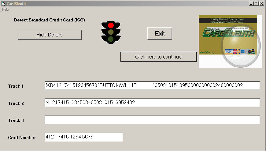 Deputy Chief Dennis Cobb, co-director with me of the Identity Theft and Financial Fraud Research and Operations Center ( www.itffroc.org ) suggested a better mousetrap. His idea was that we develop a miniature card scanner that would detect anomalies on mag stripe cards. E.g., if the device were set to detect hotel room keys, and found data that was suggestive of credit/debit cards, the card could be held as evidence. We accepted the challenge, and together with Dennis developed a prototype that would do just that.