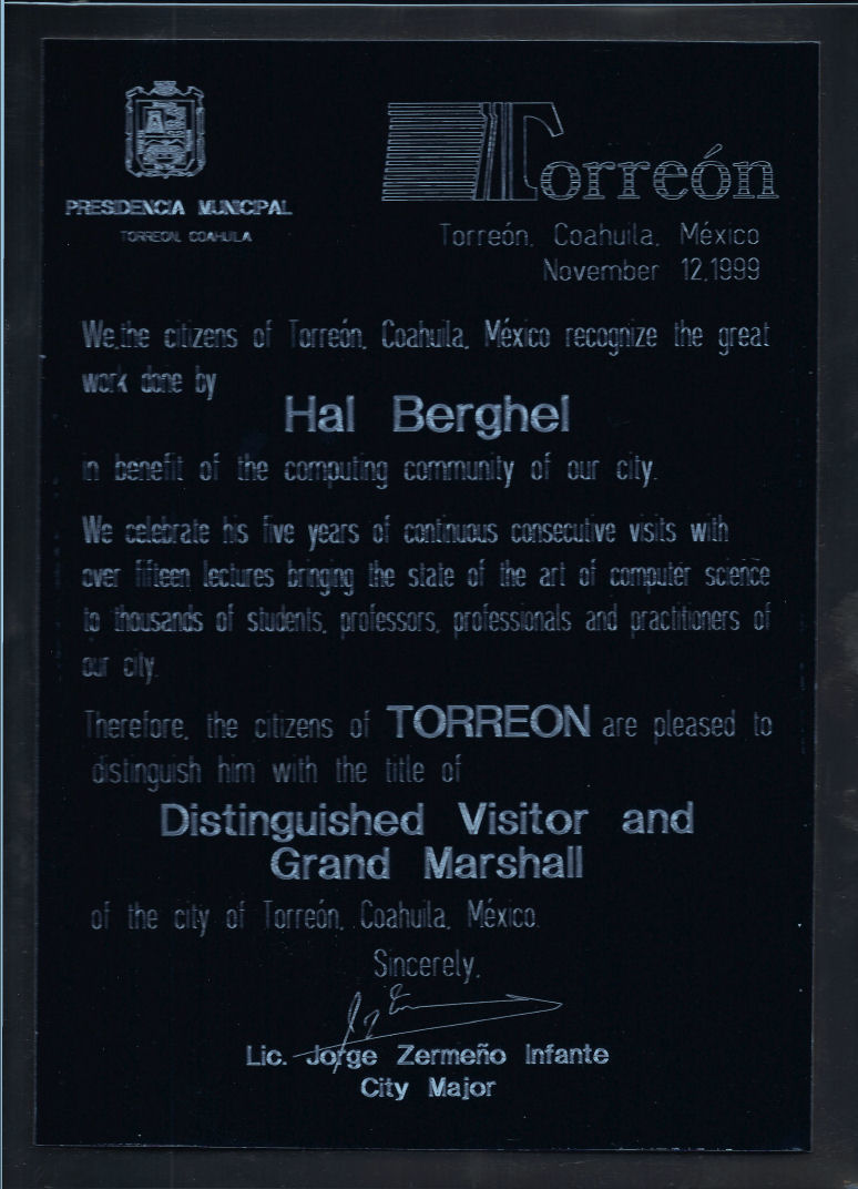 - Recognition of Lifetime Achievement, ACM Distinguished Lectureship Program (2004)