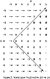 On this account, the kth diagonal, for -m <= k <= n, consists of the sequence of d(i,j) cells for which j-i = k. Ukkonen's observation is that we need only determine those d(i,j) values, p, for which i is the highest numbered row in which p occurs on diagonal k (for a restricted range of k to be specified). The value i is a function of k and p such that