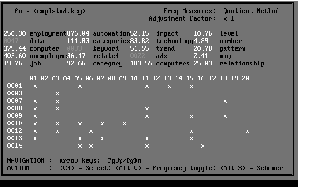 Figure 1 shows SCHEMER at work. The most significant keywords by the quotient method appear in the second window. The main window contains a matrix which plots the keyword number against sentence number. In this case the keyword analysis strongly suggests 'computer', 'unemployment' and 'automation' are important to the theme of the document.