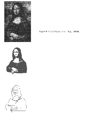 Since our interest is in the information customization aspects of imaging and not the image processing per se, we try as much as possible to utilize conventional image processing software in the lower-level operations leading up to the creation of a monochromatic bitmapped image. Our prototype then takes over the conversion to a vectored, scalable outline of the image. In the case of the image depicted in Figure 4, the intermediate monochromatic image reduced to a simplified outline consisting of approximately 500 lines and 50 curves.
