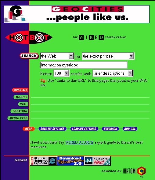 engines, HotBot. This search produced 54,466 matches.