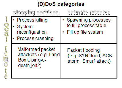 As one may see, the act of denying service may itself be further sub-categorized according to the nature and locale of the exploit. Such is the case of hacking generally. The utilities involved in many cases share the functionality and power of commercial-grade software. (a) and (c) are also amenable to further reduction.