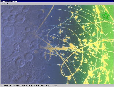 The image in Figure 1 illustrates the technique of visible watermarking. The circular watermark is clearly seen around the left part of the image. In the right most part of the image, the watermark tends to hide in the busiest part of the image. The process of hiding watermarks is illustrated in Figures 2a and 2b. In Figure 2a, the color of the star-shaped watermark easily contrasts from the color of the image to, whereas in Figure 2b the watermark's color tends to blend into the image.