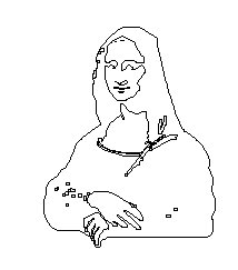 The critical point for us was the region between edge and boundary detection and image recognition, because we were interested in retrieving stored images based upon entirely graphical queries. This region is especially sensitive in this regard, because the operational domain changes from pixilated data to recognizable objects or components thereof. Figure 1 illustrates this point. Our software produced this scalable outline of 500 straight line segments and 50 Bezier curves from a digitized color image of the Mona Lisa. However, moving from the recognizing the collection of line segments at the bottom-center of the outline from the recognition of two clasped hands is a non-trivial undertaking. In any case, our first foray into a client-side information customization tool that recognized Euclidian objects in images was operational by late 1989. This program took graphical input from a digitizing tablet and returned all images that had image components that matched the input. In this way, if the user drew an equilateral triangle occluding a circle on the digitizing tablet, the software would "peruse" all of the graphics files in the repository, and list the filenames with contents including equilateral triangles occluding a circle (in any context). For the inquisitive, additional detail may be found in reference [1].