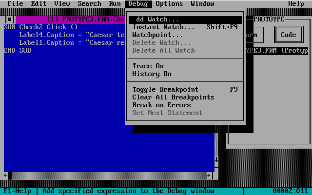 code window.